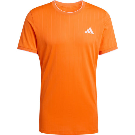 Een padel shirt heren is ontworpen op basis van de mannelijke lichaamsbouw, met een rechte tot licht getailleerde snit die ruimte biedt aan de schouders en borst. De pasvorm is bewust iets ruimer gehouden rond de bovenarmen en romp, zodat krachtige slagen en snelle sprintbewegingen nergens worden belemmerd.