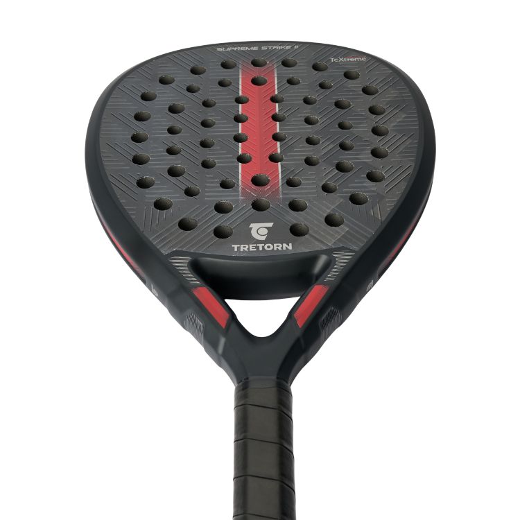 Der Tretorn Supreme Strike 2 ist ideal für fortgeschrittene Spieler, die maximale Power und Kontrolle suchen. Der rautenförmige Schläger mit seiner hohen Balance bietet viel Angriffskraft, ebenso wie das 15k-Carbon-TeXtreme-Holz. Die multidirektionale, 3D-gedruckte Oberfläche sorgt für optimalen Grip und präzise Schnitte.
